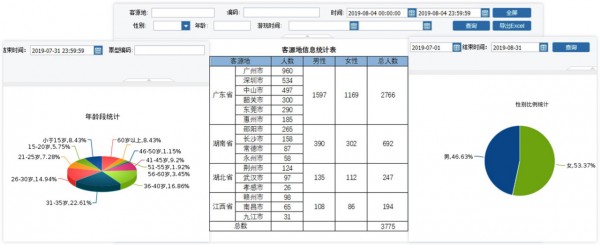 ◆ 可获取游客归属地等信息,实现客源地、客流统计分析