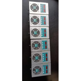 降温型:当F01设置0时为降温型,当环境湿度高于湿度 大值(湿度设定值)期间除湿装置会自动开启除湿,当环境湿度低于湿度 低值(湿度设定值减去湿度回差值)停止除湿。当环境温度高于设定温度 高值(温度设定值),风扇散热开始启动,当温度低于温度值(温度设定值减去温度回差值)降温风扇停止工作。