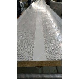 岩棉隔音夹芯板,隔音冲孔彩钢夹芯板应用于各种防火隔音场所,如办公室隔断、商场、游戏厅、电影院、歌厅、舞厅、飞机场等