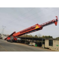 国外引进的混凝土布料机是以重型卡车为底盘,或以越野型轮胎吊车做底盘,而我公司的混凝土布料机采用自行履带式吊车作为底盘,形成铰接型上料胶带机+履带式底盘+伸缩式布料胶带机的结构,这种布料机为带式布料机的国产化开创了途径,这样的设计主要考虑以下二点:*是国内没有大型越野轮胎吊车产品,生产轮胎底盘布料机(胎带机)没有可能,而国内有成熟的50-80t履带式吊车底盘,二是履带式吊车底盘工作稳定性好,布料机在坡度小于4°的地面上,不需要附加支腿就可以工作,机动性号。