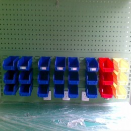 背挂零件盒的后部带有工艺挂钩,可插在百叶挂板上及专业物料整理架上,前侧为斜面,易于货物的存取,并可插分类卡片。其广泛应用于生产、维修、仓储等领域。