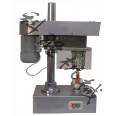 该机为台式三只旋风刀式轧盖机,台面用不锈钢板制成,整洁耐腐蚀易清扫,轧盖刀头系用优质钢材加工而成,表面谇火处理,经久耐用。工作时,被轧盖瓶不转,均布 120°三只旋风刀旋转轧盖封口,刀柄设计为弹簧结构,三刀的距离可以微调,适应性强,轧盖成品率高,马达罩也选用不锈钢罩 ,整机外型整洁,适用价值高,加工工艺精良,使用操作方便简单理想生产设备。