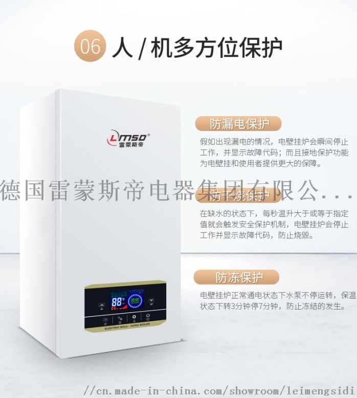 多时段设置:能够设定电壁挂炉在每天指定时段内开启或关机 多天数定时开关:能够设定电壁挂炉在每周指定日期内开启或关机 断电记忆功能:即使出现断电的情况,电壁挂炉能保存上次的操作设置。重新通电开启后无需重复繁琐的操作设置 防干烧保护:当温度超过额定值时,干烧保护器的金属片受热变形,切断电源线 防冻保护:通电的情况下当水温≤5℃,防冻灯闪动亮起,显示后水温 启动水汞10秒,启动 档加热到10℃后停止加热 童锁:在没有任何操作情况下,10分钟后主机自动进入童锁状态,只需按“开关键”3秒即解除童锁状态