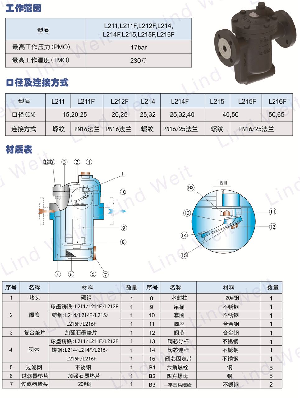 林德伟特品牌蒸汽管道大流量倒吊桶疏水阀通常用于蒸汽主管线、伴热管线、蒸汽的加热设备等需要提供高效疏水的系统。