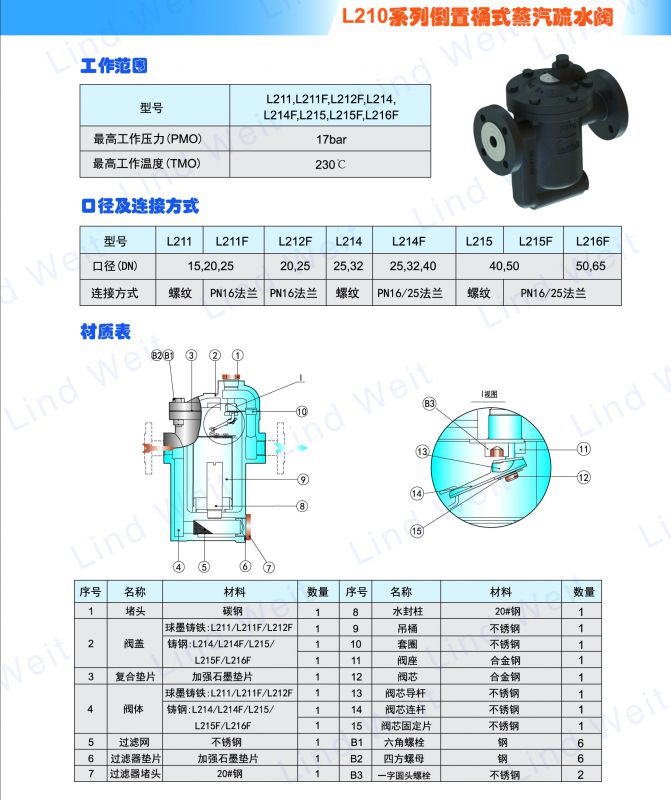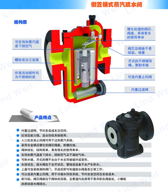 L210系列-林德伟特LindWeit倒置桶蒸汽疏水阀的产品特点:
