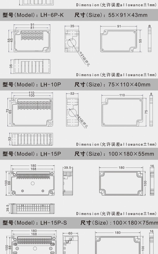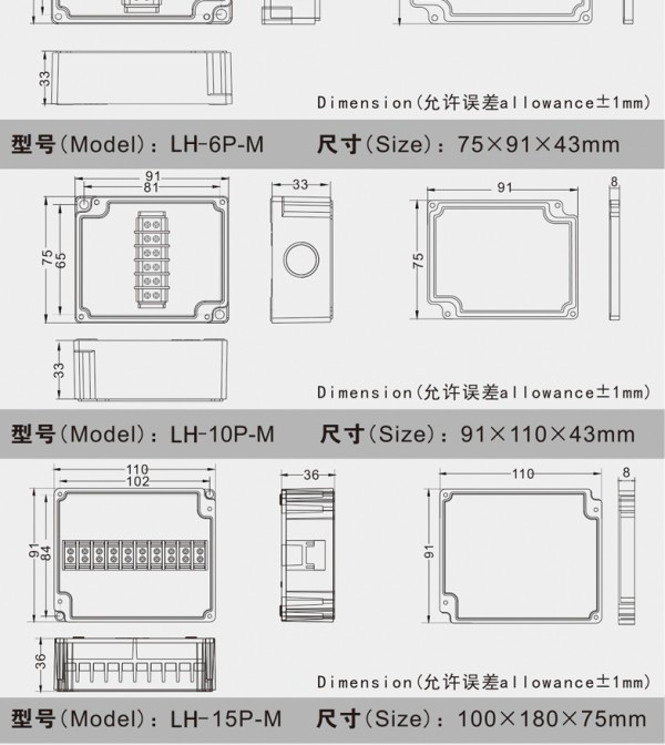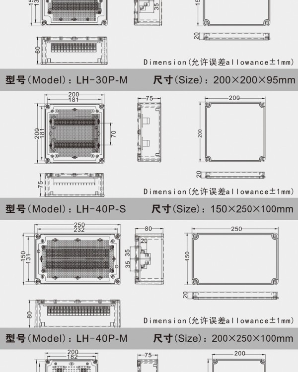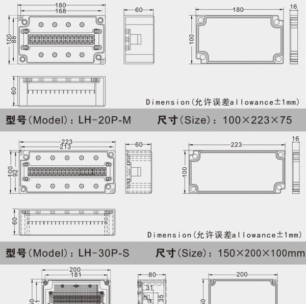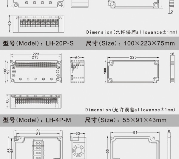 户外密封防雨接线盒自带端子ABS分线盒控ABS塑料监控外壳