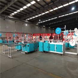 2、生产采用 拖二结构, 台口罩主体通过传送系统,自动输送分流到两套耳带自动焊接工位