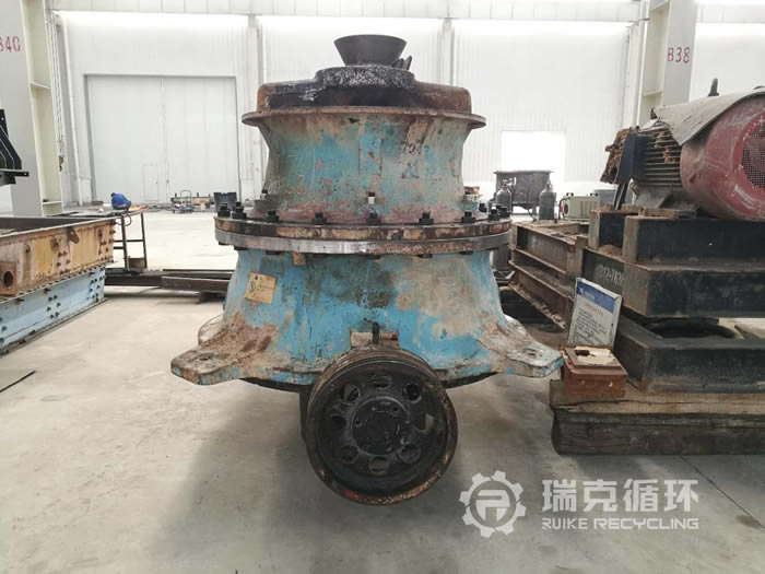 此台设备原产于洛阳大华重机,属于细碎圆锥,售于本地砂石厂做石料破碎作业,作业期间产量和性能 直保持在良好状态;2018年年初因砂石厂扩大生产,配备新的生产线而拆机,7月由洛阳瑞克循环进行回收。回收时,设备整体保存完好,**砂石余料堆积情况,外观仅有少许锈迹,其余各处均在正常状态。技术人员对其进行冲洗后,重新进行检测发现,动锥、定錐、上下机架、主轴等均正常,无重大磨损零部件,仅需进行常规检修即可再次使用。施工人员进行检修后现场试机,各项参数均符合生产标准,予以重新喷漆后出售。