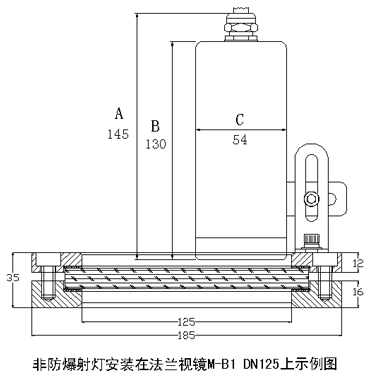 产品名称:法兰视镜灯(标配AC/DC12/24V 12W LED 20/50W冷光束反射型卤钨灯杯)