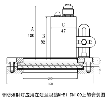 1、灯具安装时,只需在视镜盖板上钻攻丝1个安装螺孔,即可固定灯具。安装孔尺寸为M6螺深6mm