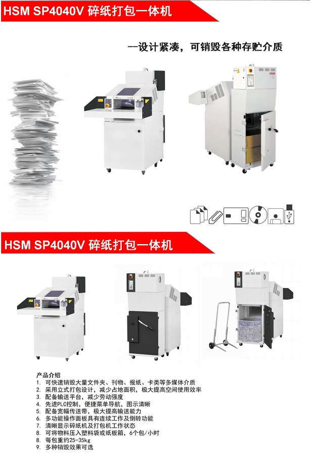 HSM Powerline SP 4040 V 碎纸打包 体机、武汉环保设备、黄石环保设备