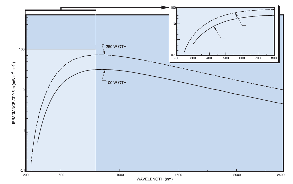 CME-T系列卤钨光源(QTH)具有高强度的可见光和近红外光输出和 弱的紫外光输出,比孤光灯更稳定,且不会发出强紫外光和臭氧,平滑的曲线输出,更适合光谱应用。为需要可见光至近红外 (NIR) 连续波辐射的应用提供了经济的解决方案。