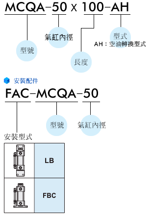 气缸内径(mm) | 40, 50, 63, 80, 100, 125, 150 |