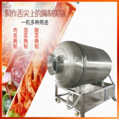 真空滚揉机也叫真空腌制机,主要是将加工的肉类,如牛肉,羊肉,鸡肉,鸭肉,鹅肉,猪肉,鱼肉,蛋及蔬菜,果品放在真空状态内,也提高调味品进入肉品的速度,并大限度的保持肉内的水分。