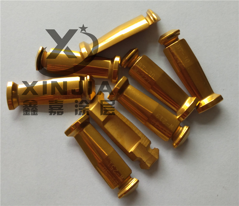 鑫嘉专业为各种高档模具及五金产品提高表面硬度、增加耐磨、使生产更加好用、并且环保及同时大大提高表面耐磨、耐蚀等综合功能。五金配件镀钛能够有效免去修模烦劳,有效解决抗花镜面及有效防止模具拉伤,解决注塑脱模难题。五金配件镀钛 主要特点:膜层具有耐磨、耐腐蚀、硬度高、干润滑性、美观、华丽,同时还具备环保等。 硬质膜层:为您的各种模具、刀具、精密零配件等产品,提供如下涂层服务{TiN、TiCN、AlTiN、CrCN、CrN、DLC、ALCrTiN}等等各种超硬多种膜层,其涂层厚度可达到0.1~8um,故而更不用担心会给尺寸带来麻烦,并以 新工艺使产品具有良好的润滑、散热(干式),使用寿命可增加5~50倍。五金配件镀钛 广泛用于:各种粉末冶金模具、五金模具、五金冲压模、钨钢模具、五金拉伸成型模具、各种塑胶模具以及各种镜面模具、热流道配件、各种钨钢刀具、各种锯片、各种工具刀具、各种抗磨轴承、齿轮、各种医疗器械、人造关节、各种精密五金零配件、五金电子零件及汽车、摩托车零配件等等。