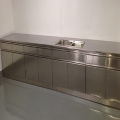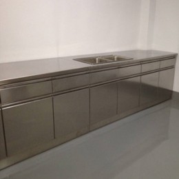 门板及抽屉面板:双层1.0mm厚不锈钢制作,表面经钝化处理。 抽屉:底板及背板1.0mm厚不锈钢制作,表面经钝化处理。