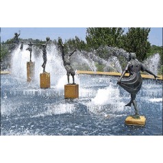 雕塑喷泉是由喷泉和雕塑结合为 体,使喷水池造型更加完美、丰富多彩。雕塑为静态美,喷泉为动态美,动与静的结合创造出 个完美的景观艺术,提高了整体的观赏性。