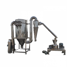 超细粉碎机:细碎,风力输送等装置组成,以高速撞击的形式达到粉碎机之目的。利用风能 次成粉,取消了传统的筛选程序。 WFJ系列微粉碎机是吸收消化日本细川公司 进产品的优点,根据我国国情设计研制的 种高效微粉机,物料的粉碎与粉闰的分 装于同 机体内,而各自独立运转;具有功能全,结构紧凑,技术性能稳定,噪音代,耗电省效率高,外观美,使用灵活,适应范围广,不产生过粉碎,可调节粉体细度,维修简便等特点,对于粉碎干燥非纤维性物料及矿物质,具有较理想效果。与国内机型相比,制品温度低粒度均匀,特适用于食糖、塑料粉末、中药材等热敏性材料的粉碎。机组有主机、辅机、集管道、电控装置为 组。辅机内有旋风除尘器与滤袋除尘器合二为 的,也可安用户的要滶分开制造使用,主机内装有离心分 装置 ,除可完成粉碎外,还具有分 功能,风 式离心剪切,无筛无网,粉状颗粒可任意调节,物料粉碎后,采用负压输送至排料阀出口,达到制品要求,广泛适用于化工、染料、涂料、医药、食品等各行业不同领域中的超过细粉碎,物料的粉碎、分 到成品是在同 密闭的系统中时进行,经除尘处理,不污染,是当前环保理想的成套设备。