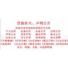 登报挂失业务办理0531-82620988 (全省认可)微信办理 见报付款