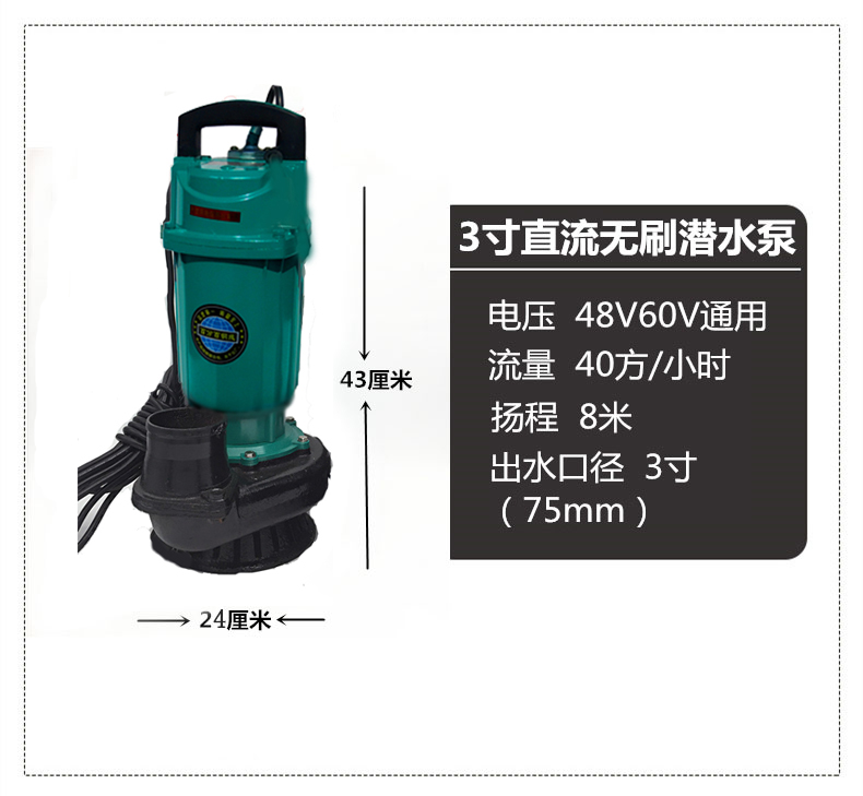 上海人民无刷直流潜水泵农用高扬程48V60V通用电动车2寸3寸4寸
