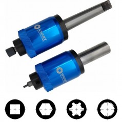 旋转冲削工具,是 种操作简单的异形孔加工刀具,适用 般车床、CNC自动车床、加工中心、钻床等设备,可加工盲孔、通孔、有规则或不规则的多边形,除了加工标准的六角、正方孔,也可定制星形、花键等其它特殊形状,只需更换刀头即可。