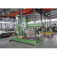 摇臂钻床,也可以称为横臂钻。主轴箱可在摇臂上左右移动,并随摇臂绕立柱回转±180°的钻床。摇臂还可沿外柱上下升降,以适应加工不同高度的工件。较小的工件可安装在工作台上,较大的工件可直接放在机床底座或地面上。摇臂钻床广泛应用于单件和中小批生产中,加工体积和重量较大的工件的孔。摇臂钻床加工范围广,可用来钻削大型工件的各种螺钉孔、螺纹底孔和油孔等。摇臂钻床的主要变型有滑座式和万向式两种。滑座式摇臂钻床是将基型摇臂钻床的底座改成滑座而成,滑座可沿床身导轨移动,以扩大加工范围,适用于锅炉、桥梁、机车车辆和造船,机械行业,等行业。