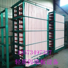 山东轻质隔墙板设备是涉及 种墙板成型机.包括液压机.模具车.其特征在于:模具车内部由隔离板分隔为隔离腔,模具车的前面挡板上纵向设置有抽芯孔.并且该挡板上侧也设置有螺栓孔.通过螺栓与左右两个挡板固定.模具车底部与挡板连接.本实用新型的有益效果在于:抽芯孔的设置使得加工后的墙板含有隔音孔.生产出的墙板质量轻.隔音效果好,隔离板的使用可以提高工作效率.可以 次成形多个墙板.