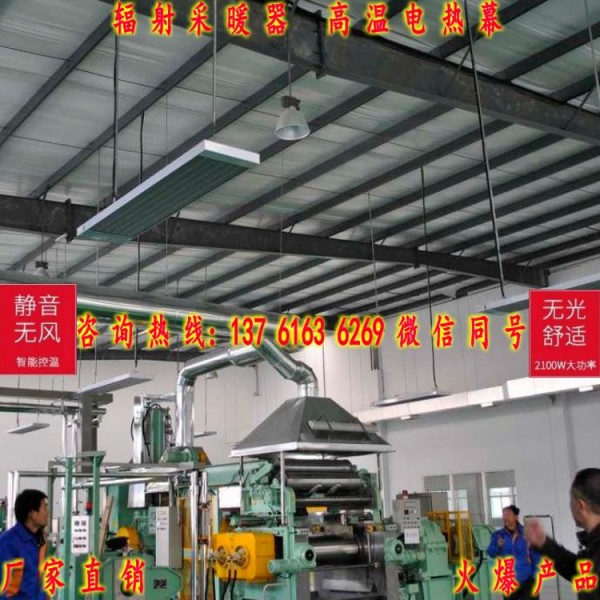 我公司生产的九源牌高温电热幕,用料精良,做工考究。安全性能、热转换率。九源电热幕应用于大型通透的高大厂房车间辐射采暖供暖和工业生产加工中心供暖,仓库和购物中心、展览会场、多功能体育场馆和娱乐大厅采暖、以及室外采暖等许多其它场所。