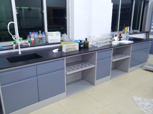 2)理化贴面板采用25mm厚的国产优质环保型中纤板为基材,表面粘压耐酸碱的进口0.9mm厚Chemsurf理化板,台面四周断面经国产优质2.0mm厚PVC封水处理,外表美观、光滑。