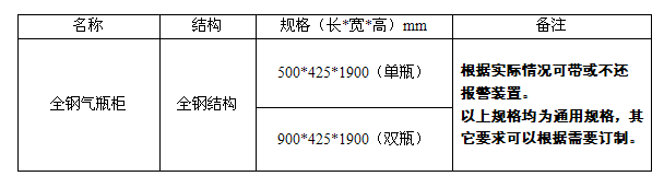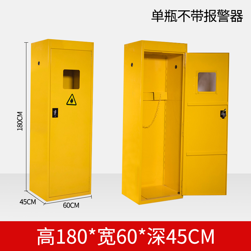 3、内置双不锈钢卡圈(套锁式)以固定气瓶,翻推式垫板方便气瓶推入;内设排风口,便于泄漏的气体排出,整体外形设计美观大方;配有燃气泄漏报置,适合各种气体气瓶的存放。