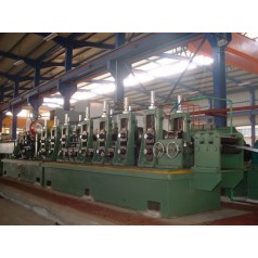 设备组成:开卷机、引料矫平机、剪切对焊机、储料活套、成形定径机组、焊接设备、电脑飞锯、检测设备、水压试验机、探伤设备、铣头机、辊道、轧辊