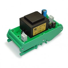 电源安装在塑料托盘中,可以安装在 DIN 导轨上。