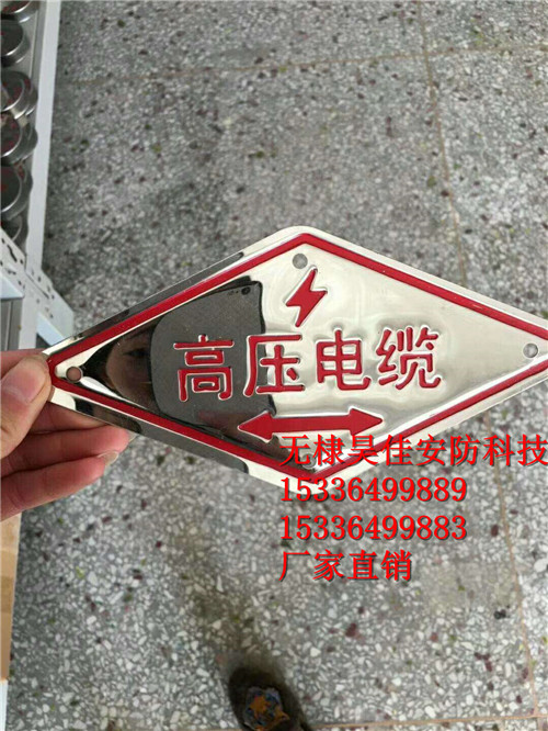 四、标牌材质为不锈钢板文字图案为腐蚀刻制凹凸版字面,耐磨、明显、文字可永久不掉
