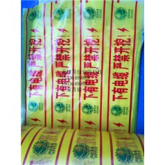 公司十分注重产品质量与新产品的开发,光缆管道地埋式警示带采用优质基材, 进的生产工艺生产而成,该产品采用高强度、耐老化的高分子材料,色泽鲜艳、醒目,长期铺设在地下不褪色,耐腐蚀性能好,符合长期地下不变要求。
