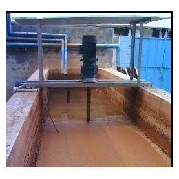 当原水与混凝剂或助凝剂液体流经混合池时在搅拌器的排液作用下产生流动循环,使混凝药剂与水快速充混合,以达到混凝工艺的要求。