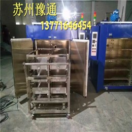 医用导尿管烘干箱 200℃导尿管硅胶烘箱 豫通硅胶硫化烘箱工作原理硅橡胶采用过氧化物硫化时,过氧化物分解引发高聚物反应后,生成了低分子化合物等存在于橡胶中将影响橡胶机械性能。况且硅橡胶在 阶段加热成型后,其交联密度不够,要使其进 步反应,必须增加时间或升高温度,这就占用了模具和硫化机的时间,影响效率。二段硫化中,过氧化物实际上已经很少,主要是靠氧作用增加交联。所以,二次硫化硅胶烤箱烘箱应该配备鼓风装置,且胶不应堆放过密。氟橡胶 段硫化时放出的HF等低分子物质,将妨碍橡胶交联,而且高温还会放出。腐蚀金属零件,所以也需要二段硫化。另外氟橡胶还可能发生环化反应生产含氟基环,从而使它的耐热性进 步提高本二次硫化硅胶烤箱为强制空气对流加热型二次硫化设备,具有二重废气排出功效,同时可选用可热装卸的装卸车,有利于提高质量和工作效率。