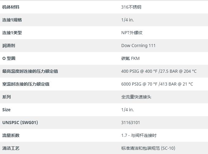 Swagelok 快速接头不锈钢全流量SS-QF4-B-4PM系列