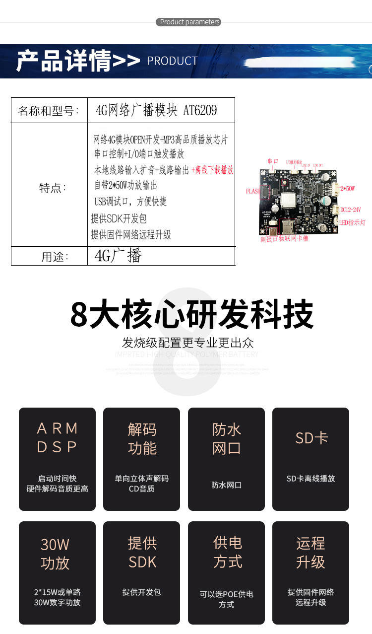 离线下载播放4G网络广播模块AT-6209