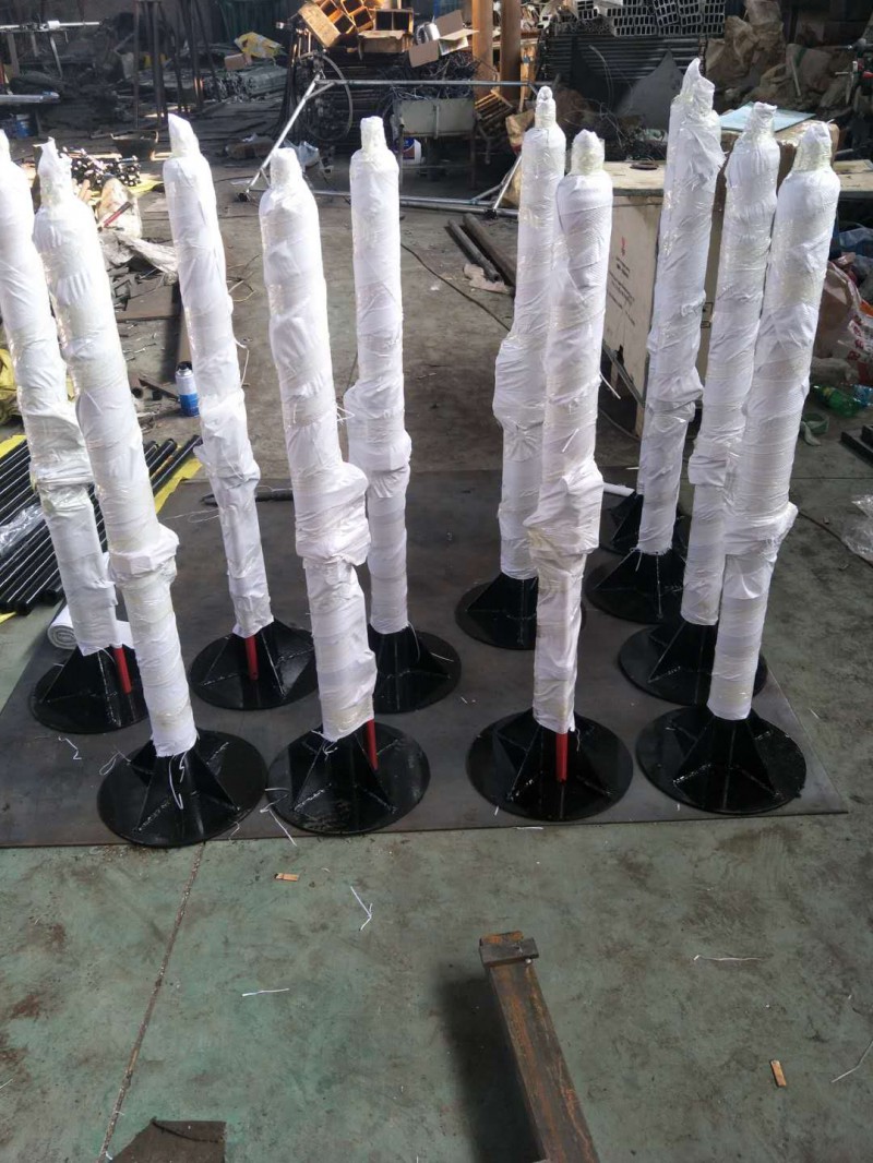 6、在合适位置挖好坑,*把托盘插入坑内,再把底座顶在托盘上,然后调节千斤顶,把线杆调直即可