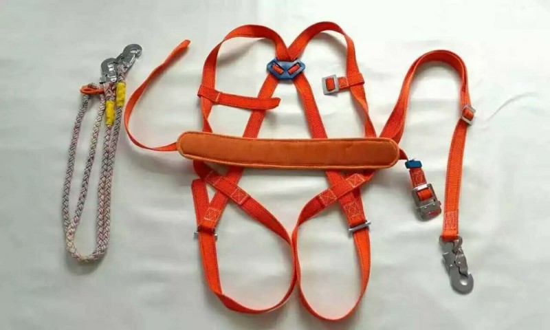 2、安全带的腰带和保险带、绳应有足够的机械强度,材质应有耐磨性,卡环(钩)应具有保险装置。保险带、绳使用长度在3 米以上的应加缓冲器。