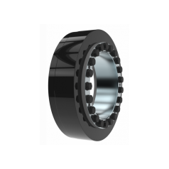 两件式收缩盘(路径控制)是外部夹紧元件,由压力环和套筒组成。通过以指定的螺钉拧紧扭矩拧紧夹紧螺钉,压力环被轴向拉到套筒上。锥形表面的使用减小了套筒的内径,从而在空心轴上施加了径向夹紧力。由收缩盘连接施加的夹紧力在轴和轮毂之间的接触表面上产生摩擦连接。