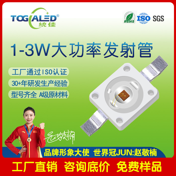 1-3W大功率红外线发射管波长可以做850NM/940NM。自主研发及自主模具,众多品牌客户长期使用,质量稳定!