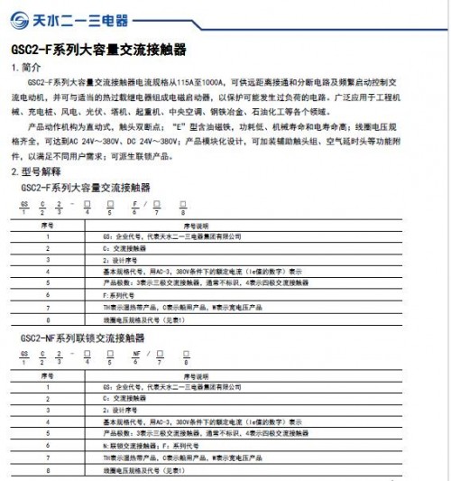 天水二*三 交流接触器GSC2-3304F 4P系列