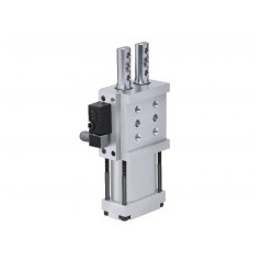 带有双非旋转杆、高强度铝制扁平外壳/管、Ø 40 mm 扁平椭圆圆柱体,推拉力为 600/400 N,同时移动青铜/石墨衬套中的杆,集成位置传感。