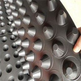 塑料排水板是由是聚乙烯(HDPE)为原料塑胶底板经过冲压制成圆锥突台或者加劲肋的凸点(或中空圆柱形多孔)而成。