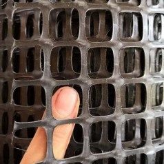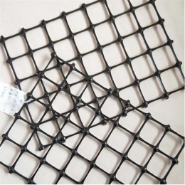 双向拉伸塑料土工格栅是以PP或PE为原料,经塑化挤出板材、冲孔、加热、纵向拉伸、横向拉伸而成