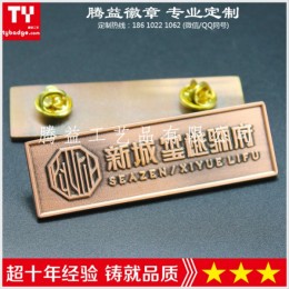 主要工艺有:蚀刻(咬板)、压冲、注漆(填油)、丝印、滴胶、仿珐琅、锌合金压铸、柯式印刷等。材料可选用铜、铁、锌合金、马口铁、亚克力、铝、铅锡合金、PVC等材料。