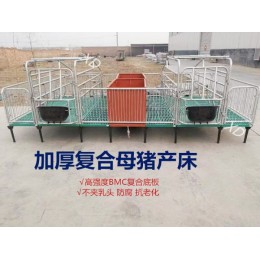 母猪产床底全部采用复合材料,抗老化,不易折。规格2.2m*3.6m小猪漏粪板全部复合材料,母猪位是全部复合材料承重三千公斤小猪承重 千公斤,配件:包括2个保温箱,2个电保温板(全部采用复合电热板寿命达到十年以上),2母猪料槽2个仔猪料槽。