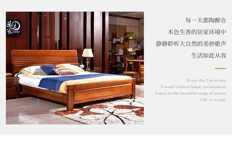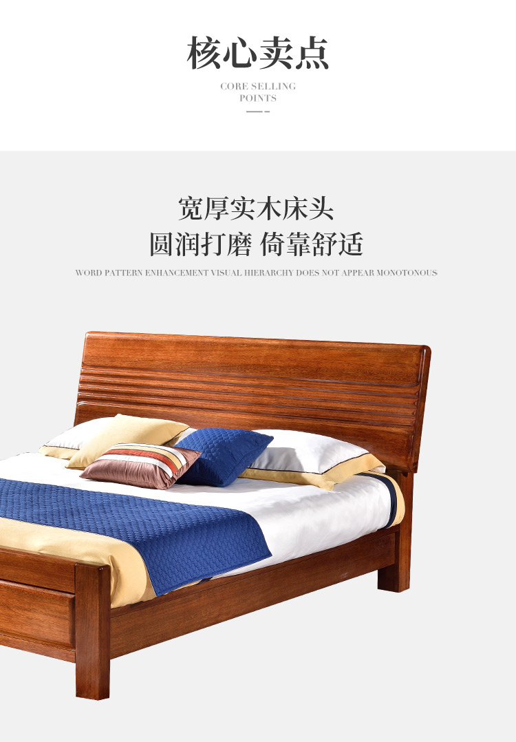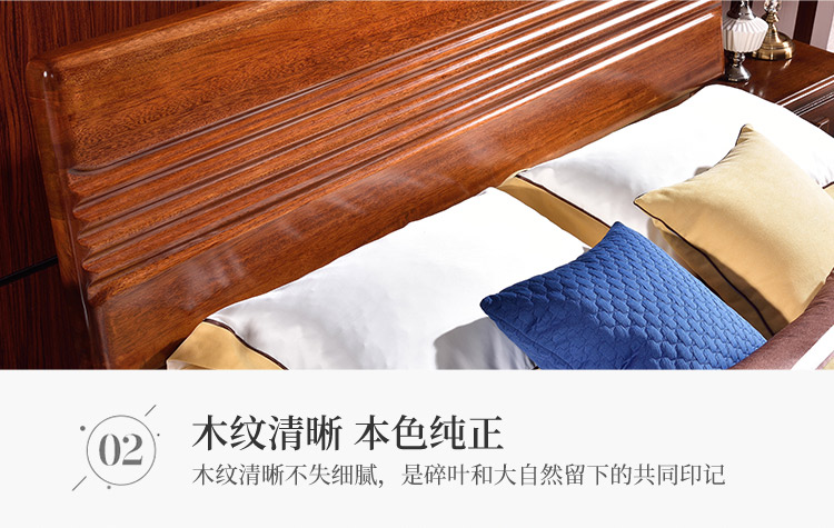 实木床现代简约中式胡桃木9026#低箱实木床卧室组合 实木双人床