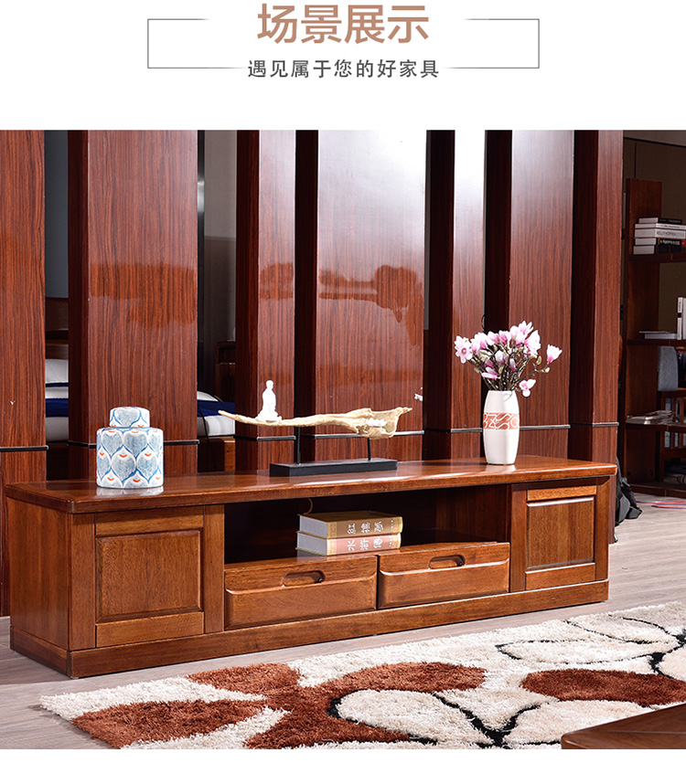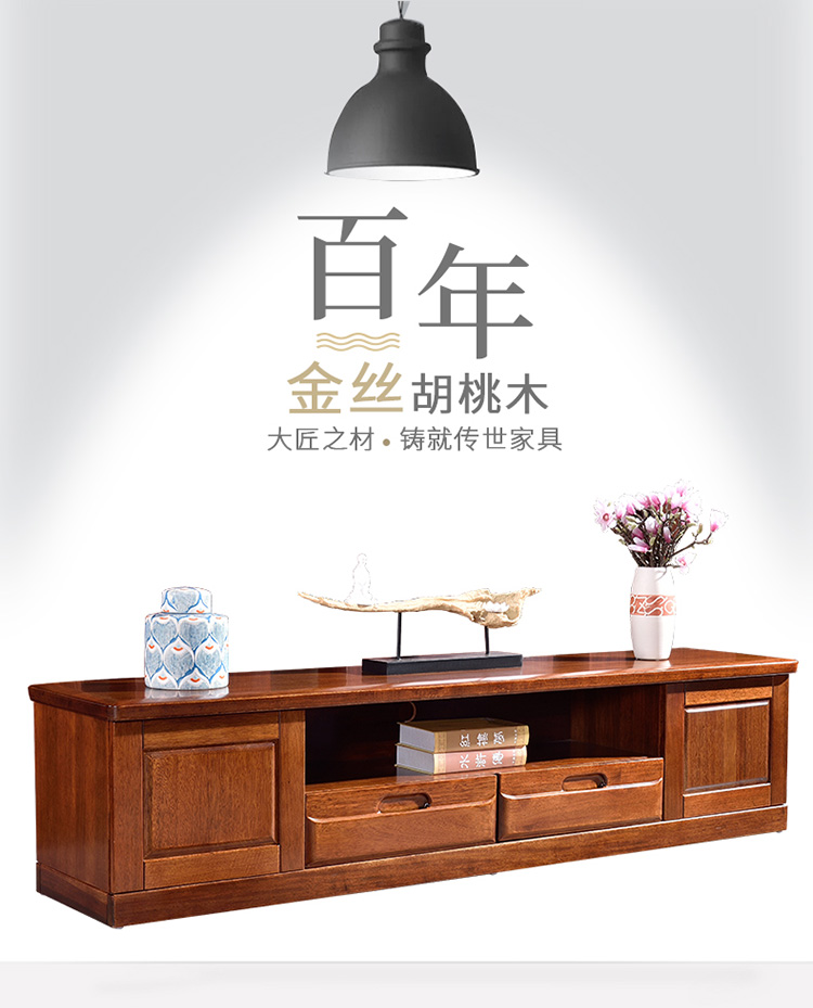 实木电视柜简约中式实木电视柜客厅电视柜 小户型胡桃木客厅地柜9402#